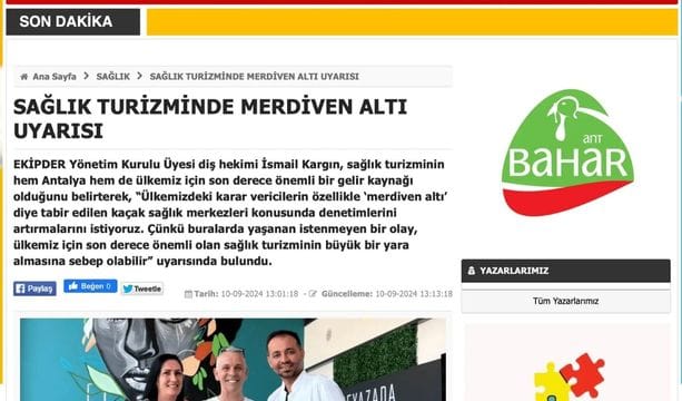 EXCELLENT Based on 4 reviews Dimitrinka Ilieva2024-06-24Trustindex verifies that the original source of the review is Google. Страхотен екип . Д-р Исмаил работи супер професионално . Качество на страхотно ниво . Препоръчвам от сърце на всеки който иска да изглежда добре.Благодаря на целия екип 🌷🌷🌷🌷🌷 Jolanta Pucka2024-06-08Trustindex verifies that the original source of the review is Google. 2 years ago, zirconium crowns were made, now I was on vacation in Antalya and I contacted the clinic to make a check up .. the best experience, responsive, kind, knowledgeable team i pleasent with all work done !!!thank you to all BeyazAda team!!! Jeanna Kis2024-05-31Trustindex verifies that the original source of the review is Google. The best company with excellent work and quality. I recommend everyone to use the services of Beyaz ADA Dental Clinic in Antalya. Excellent work and quality led by Dr. Ismail Kargin - best work and excellent quality. Excellent service, care, transfer and hotel where consultant translator Dima Marchuk will always help you - everything is at the highest level. Denis Yanchoglov2024-04-25Trustindex verifies that the original source of the review is Google. This is definitely the most impressive dental clinic I've ever been to. The price and quality are perfectly balanced. My wife and I visited them and were very happy with the services
